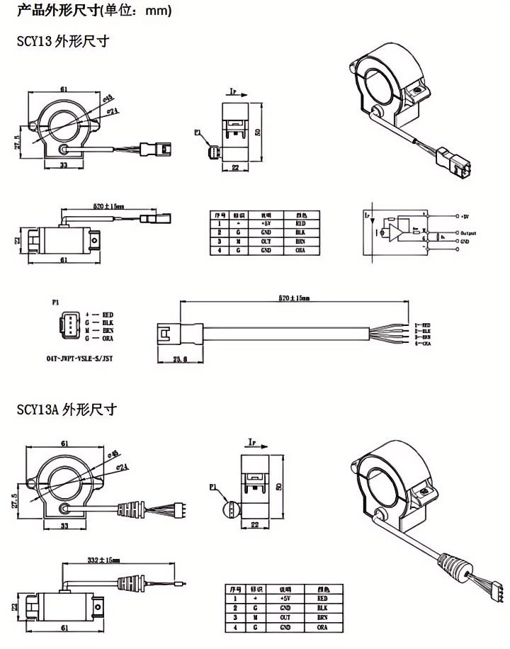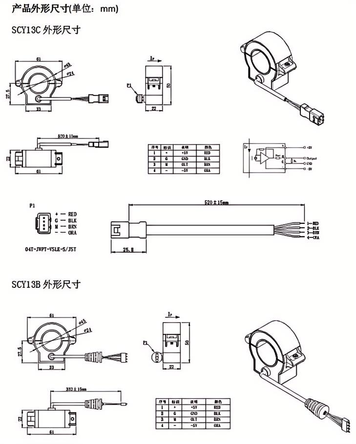 SCY13系列傳感器系開環原理,傳感器的初、次級之間完全絕緣隔離,可用于測量交流、直流和脈沖電流;開孔形式為圓孔,設計為可打開式,方便更換維修,接線方式采用引出線方式,采用汽車級元器件,主要用于測量電纜導體的電流;SCY13系列傳感器精度高,低功耗,拆卸方便,過載能力強.
