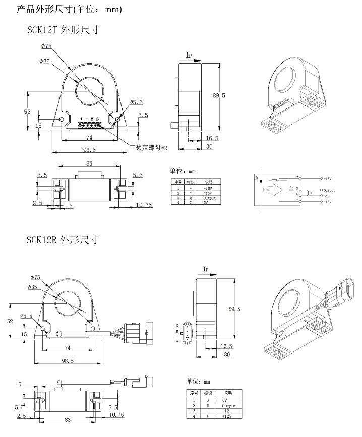 SCK12 Series open loop current sensor develops on the basic of hall effect principle. Galvanic isolation between primary and secondary circuit of the sensor. Measure DC, AC or pulse currents.